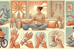 手術後のリハビリはより慎重に行う必要があります。腱板の損傷に加え、手術を行なったことでより安静が必要な状態ですから、肩周りだけでなくまずは手指、手首、肘というふうに段階を踏みスモールステップで運動を開始します。